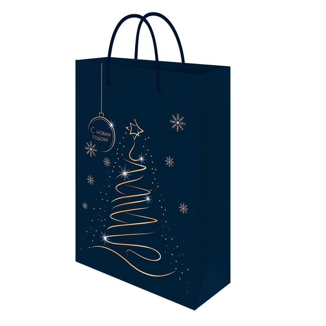 Миленд/Пакет бумажный ламинированный. С Новым годом. Синий с елкой/140 х 200 х 65/ППК-2280/